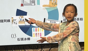表達練習此為初階閱讀表達課程。第五天將錄製口語表達練習影片,於課程結束剪輯完畢後,用line發送下載連結和家長分享。